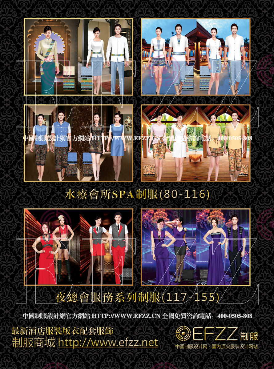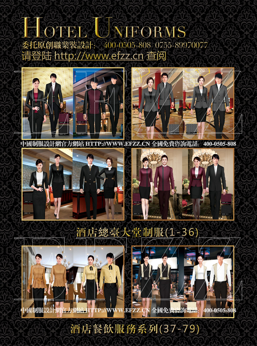 國際酒店制服(五)書籍,名稱擬定《Five-star hotel uniforms》,其中特色為現(xiàn)代商務(wù)、復(fù)古前衛(wèi)為主設(shè)計的五星級酒店系列方案,服裝書籍以四類風(fēng)格貫穿全書:后現(xiàn)代中式制服設(shè)計方案、民族風(fēng)酒店制服、時尚簡歐酒店制服、東南亞風(fēng)情酒店制服;