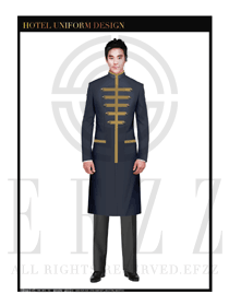 深藍(lán)色男裝長(zhǎng)款酒店門童行