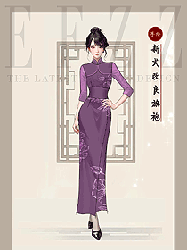 淡紫色高端旗袍女長款中式