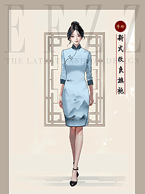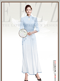 高端新中式改良淡藍(lán)色旗袍