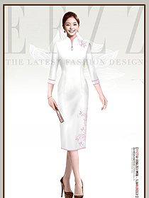 宴會禮服旗袍白色款定制設(shè)