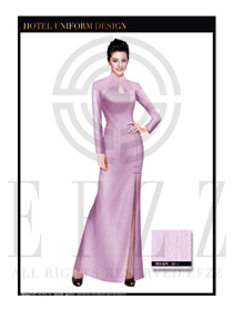 時尚粉紫色長裙款中餐迎賓
