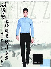時(shí)尚淺藍(lán)色男款中餐服務(wù)員