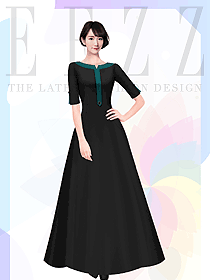 原創(chuàng)設(shè)計深藍色長裙款KT