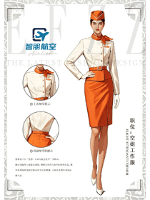 手繪空姐職業(yè)裝:藍(lán)金輝映