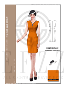 時尚橙色短袖連衣裙款專賣